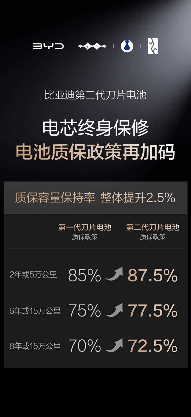 长期以来,充电速度与电池寿命被视为一对矛盾体,大功率充电往往伴随着电池寿命的缩短。然而,比亚迪第二代刀片电池通过技术创新打破了这一魔咒。通过优化电池内部结构和热管理系统,第二代刀片电池在实现快速充电的同时,保证了电池的耐用性。比亚迪甚至宣布,第二代刀片电池的质保政策再加码,电池容量低于77.5%即免费包换,电芯终身保修,这无疑是对其长寿命特性的最佳背书。