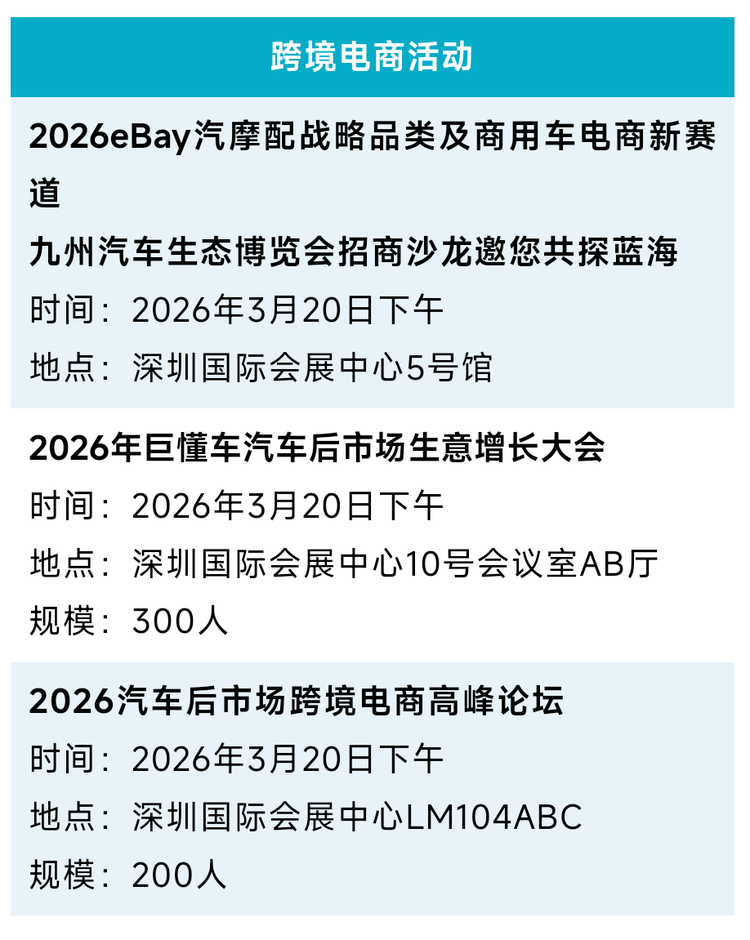 在中国汽车产业加速“走出去”的背景下,九州汽车生态博览会正逐步成为连接全球市场的重要贸易枢纽。本届展会将进一步强化产业链出海,举办全球汽车设计领军者闭门会议、新能源汽车出海大会,以国际化创新合作助力产业链出海,实现全球共赢生态共生。同时展会联合懂车帝、ebay、TEMU、AliExpress、Shopee、coupang、Yandex Market、OZON等跨境电商,为现场买家搭建高效率的国际采购与合作平台。