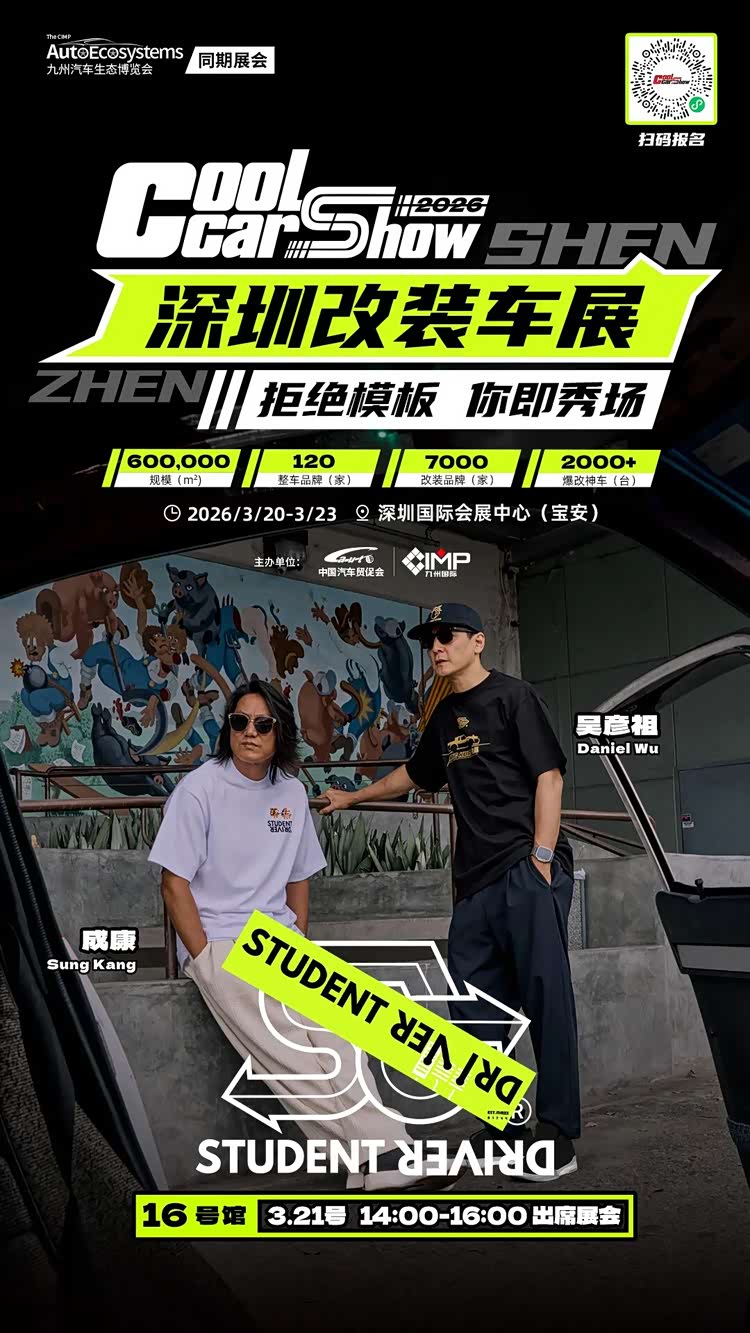 重磅官宣!STUDENT DRIVER主理人吴彦祖、成康邀请大家一起参加CoolCarShow 2026 深圳改装车展,3月21日现场等你来打卡!