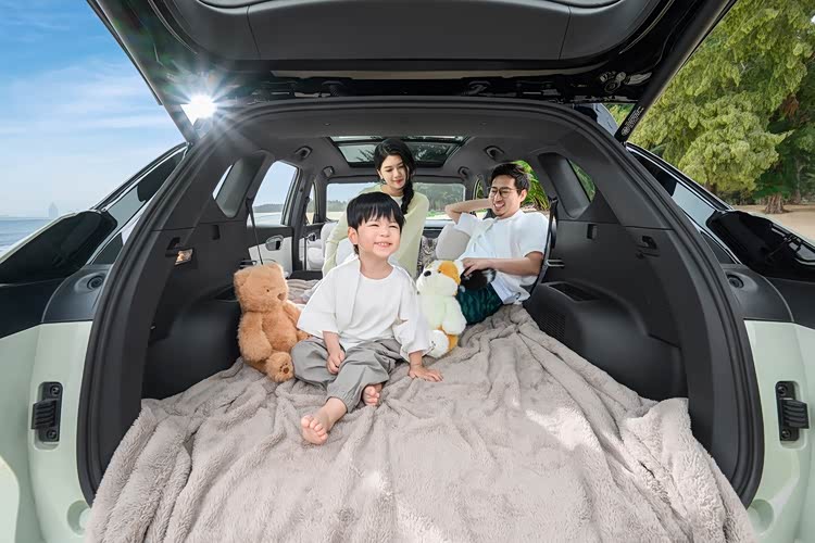 悦意07凭借2772mm超长轴距与大五座布局,打造出同级领先的乘坐空间:宽敞的后排腿部空间,配合纯平地台与人体工学座椅,即使长途乘坐也不易疲劳;而590L超大后备厢(扩展后可达1800L),可轻松容纳帐篷、烧烤架、行李箱等大件物品,甚至能放下冲浪板或山地车,满足户外爱好者的多元需求。
