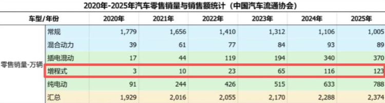 数据显示,2020年全国增程式电动车的销量仅有3万台,到了2025年,这个数字飙升到了123万台。增程车之所以能快速崛起,核心就是解决了当时新能源车主的两大核心痛点:电池成本高导致纯电车价格居高不下,充电设施不足导致的续航焦虑。