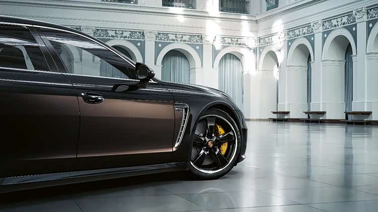 保时捷首次在Panamera Exclusive系列中提供双色渐变喷漆:车门把手以上方采用深黑色金属漆,而腰线之下沿至车尾线条,则使用的是栗棕色金属漆。这100台车的每一辆都由手工喷漆,以确保色彩的和谐融合。Sport Classic设计的20英寸轮毂和前进气格栅同样采用深黑色金属漆。