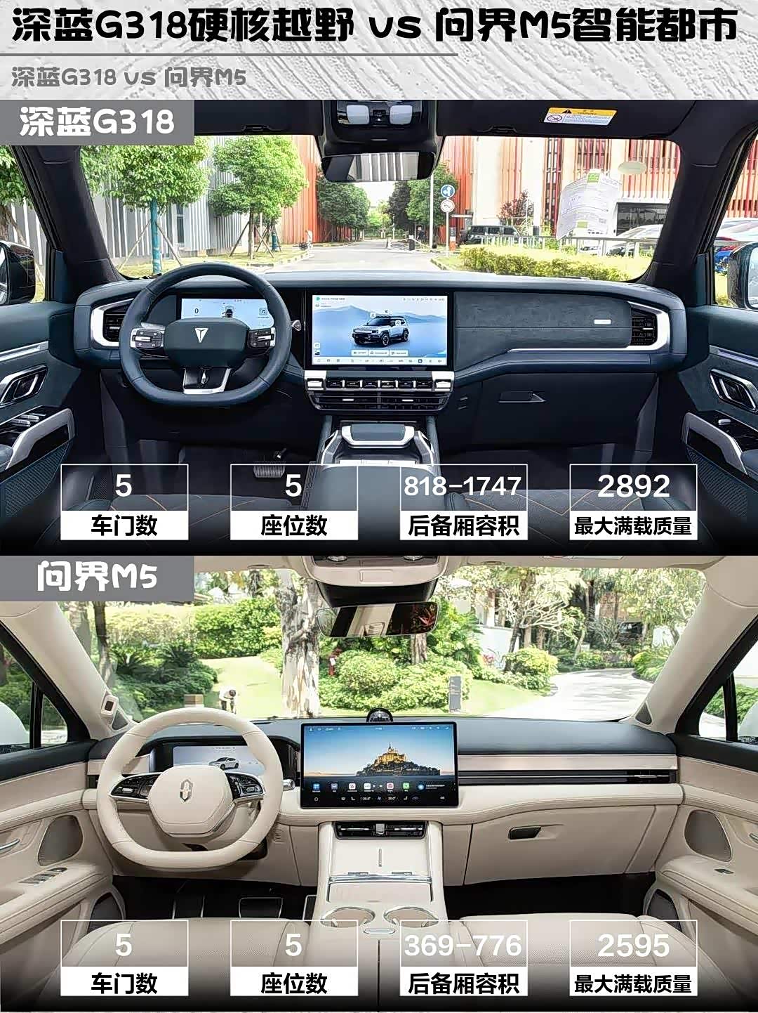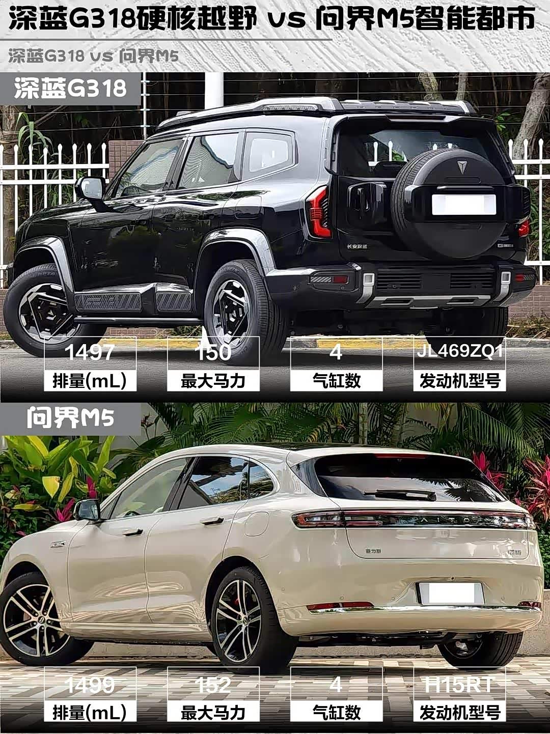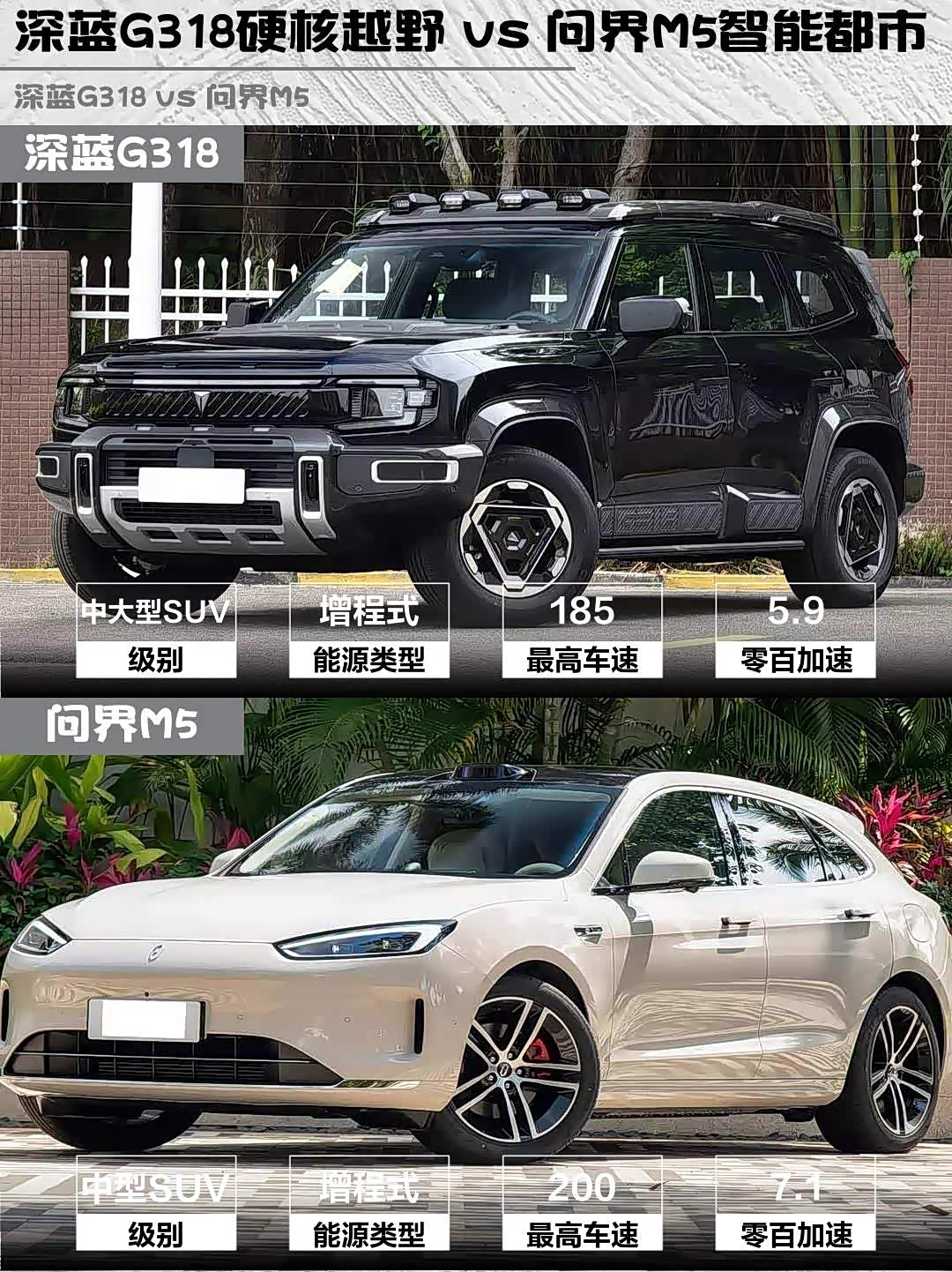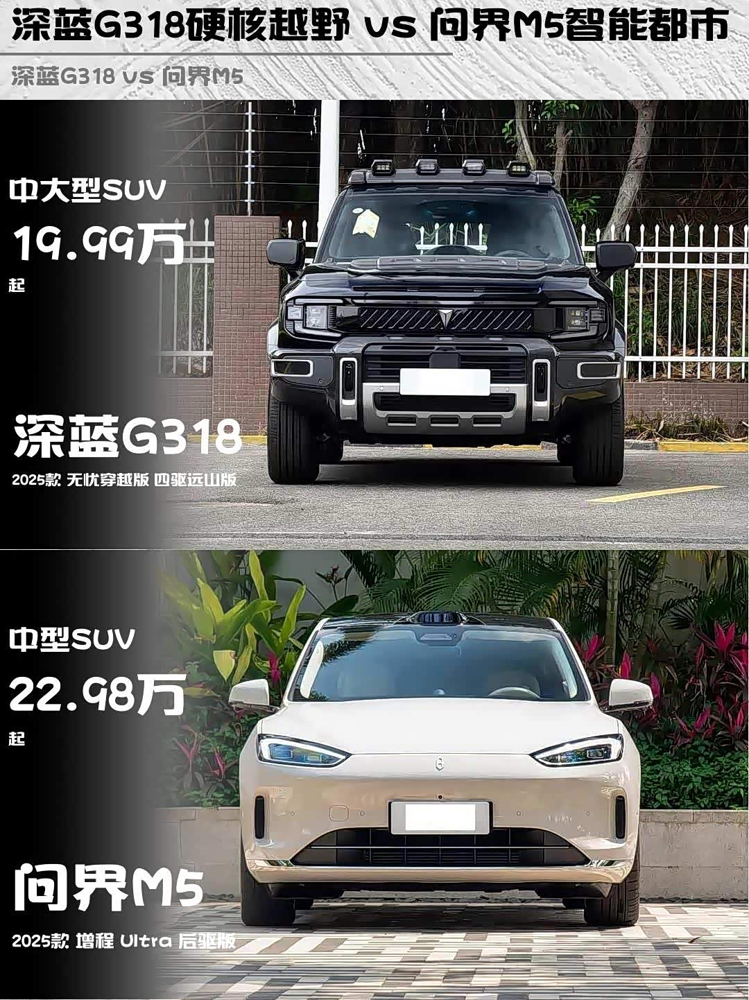 最近在纠结 深蓝G318(参数|询价) 2025款无忧穿越版四驱远山版和问界M5 2025款增程Ultra后驱版的朋友看过来!作为深度体验过两台车的车主,掏心窝子分享真实对比感受👇