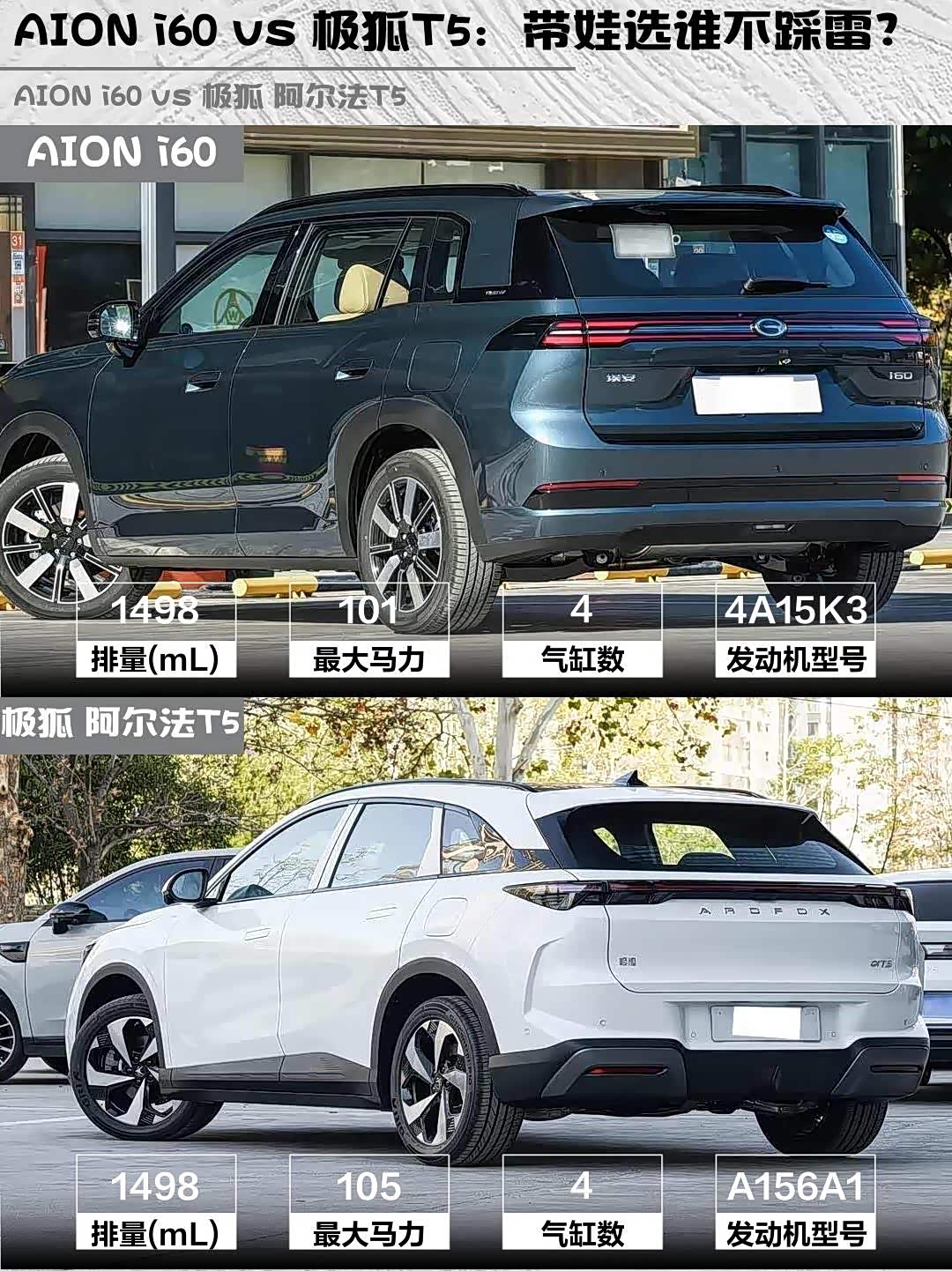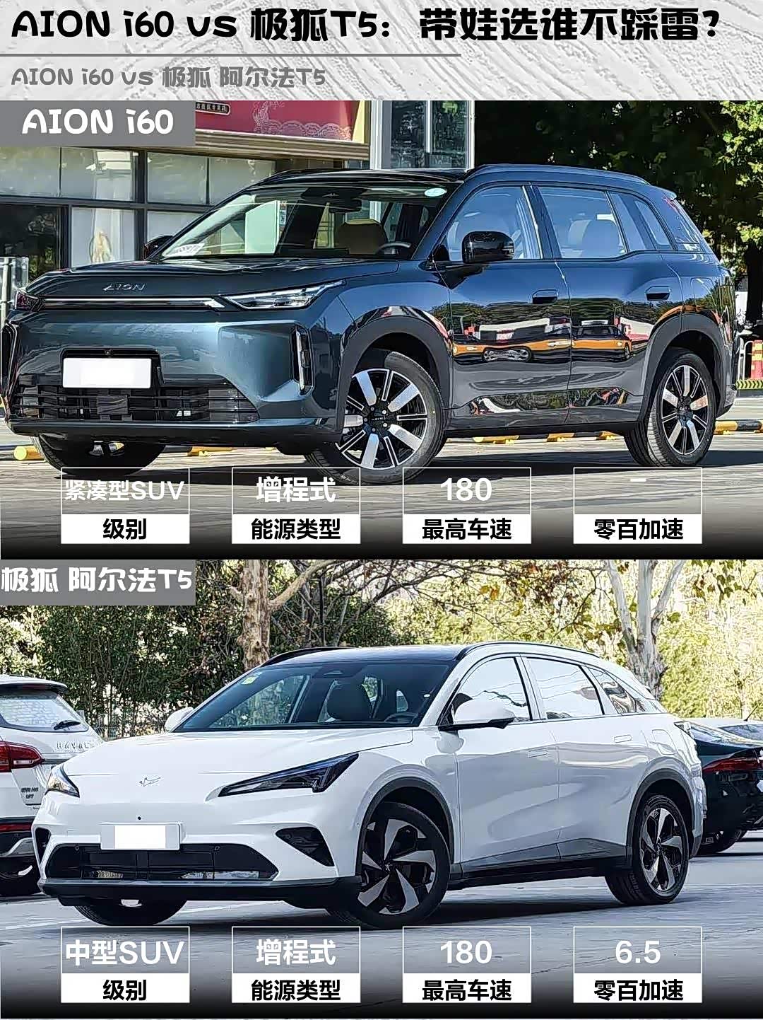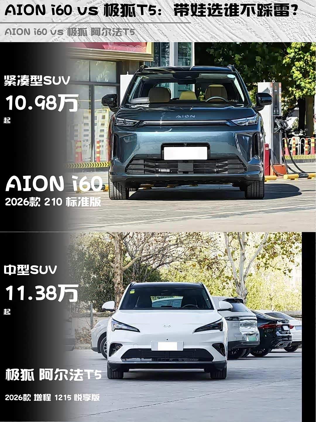 最近在选增程式SUV的朋友看过来! AION i60(参数|询价) 2026款 210 标准版和极狐 阿尔法T5 2026款 增程 1215 悦享版这两款车我都深度体验过,今天从实际用车角度给大家做个干货对比👇