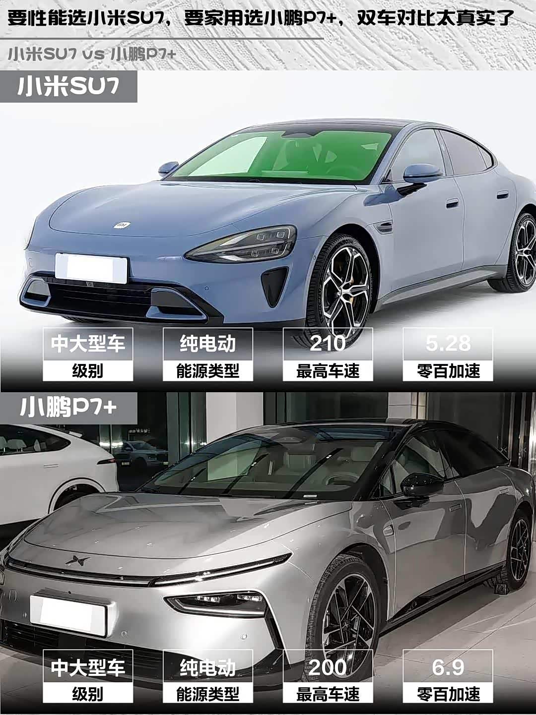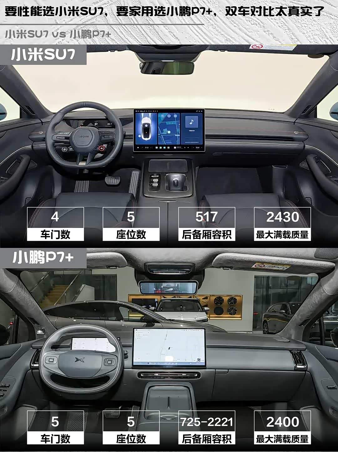 要性能选小米SU7,要家用选小鹏P7+,双车对比太真实了