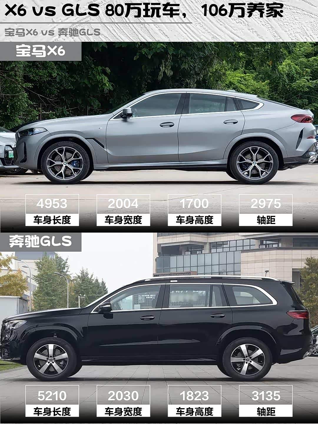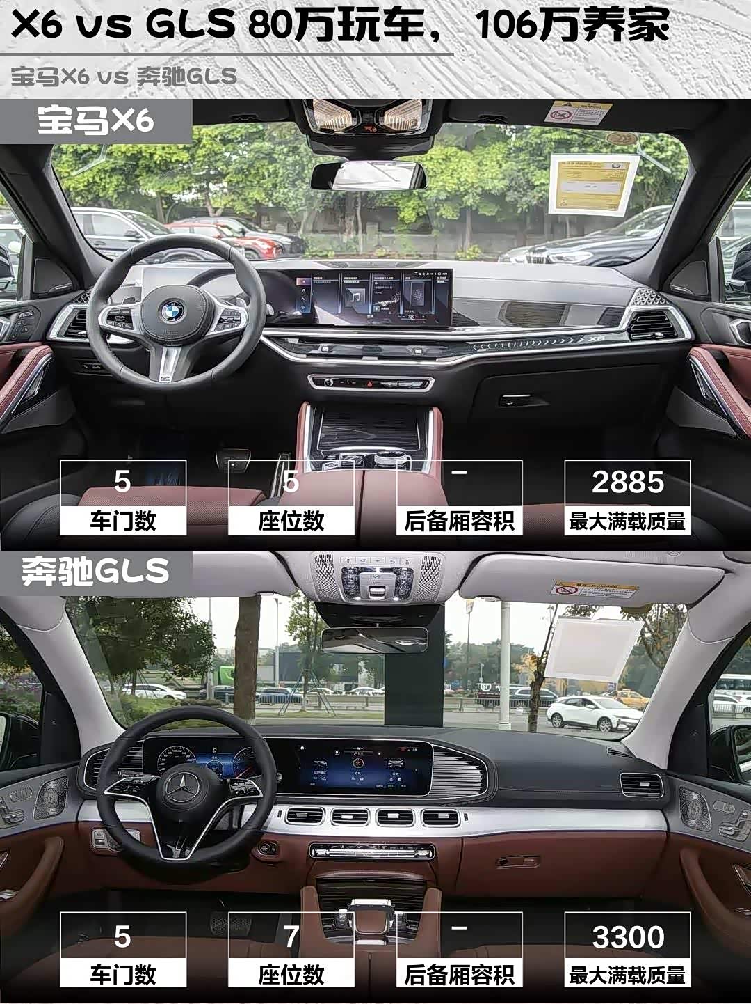 最后说价格,X6尊享型80.8万比GLS动感型106万亲民不少,但GLS送三年不限公里质保。个人觉得:要个性操控选X6,要商务家用选GLS。毕竟X6是为自己买的玩具,GLS是给全家买的座驾,你们说呢?