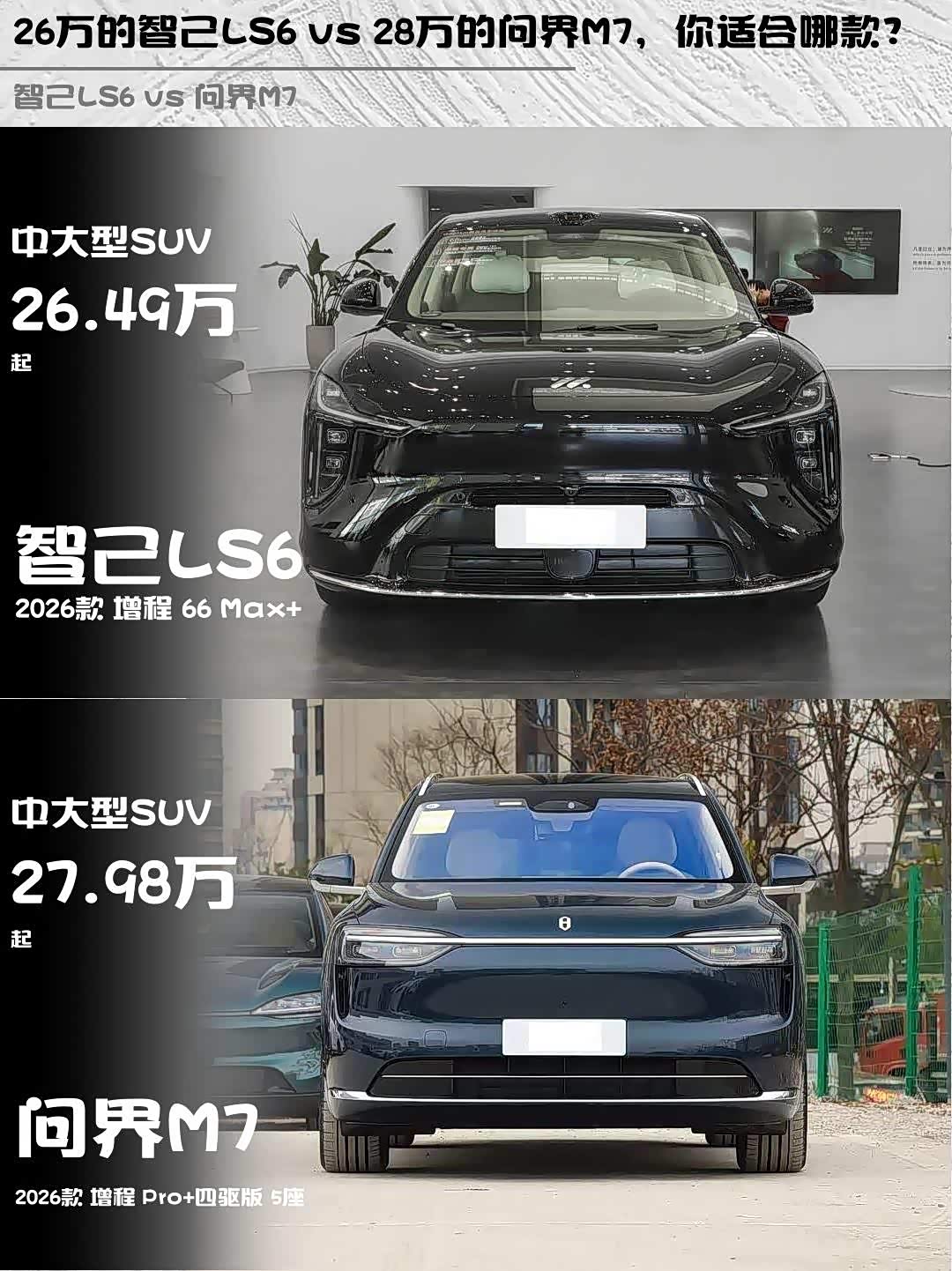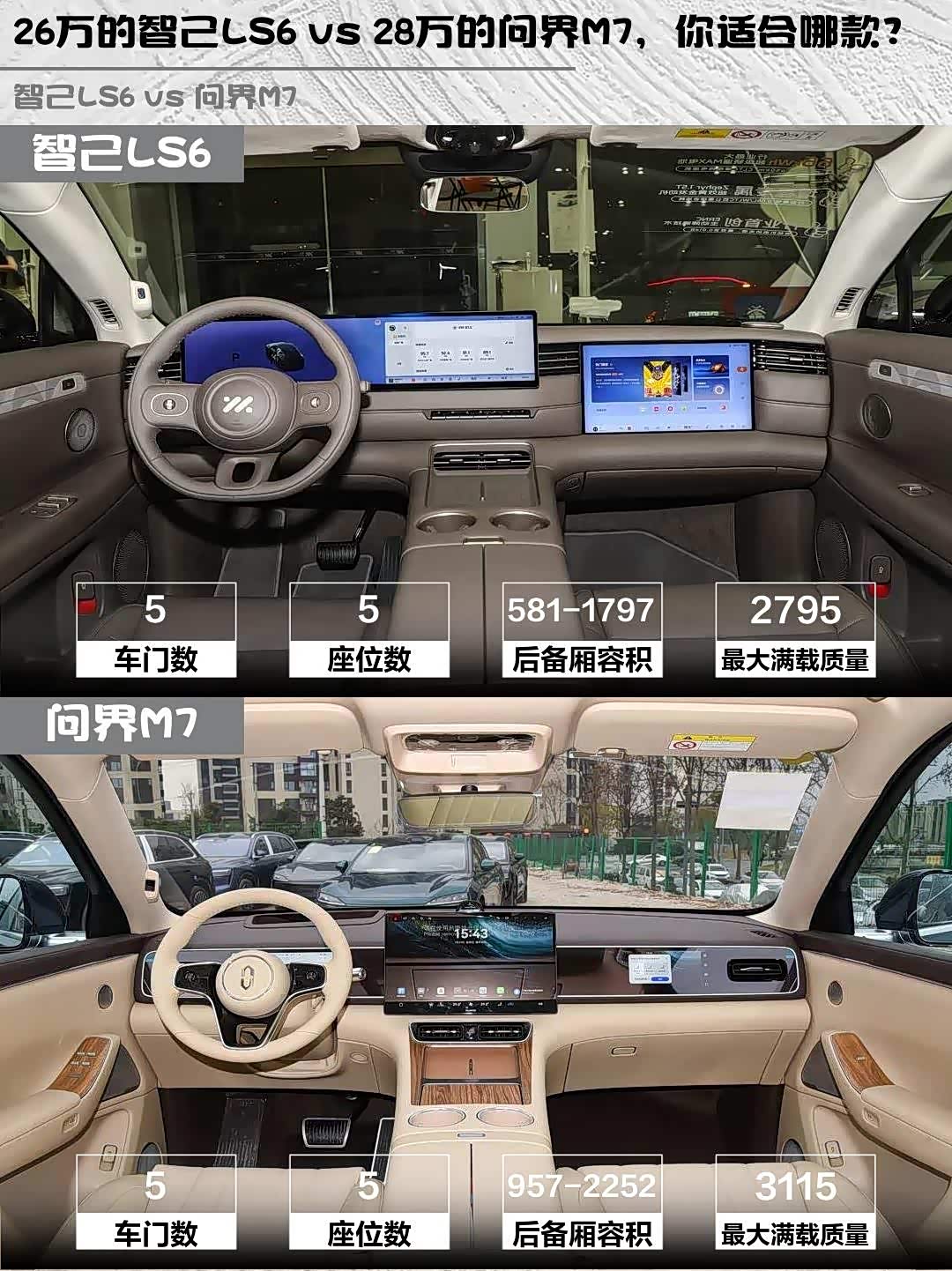 最近后台好多人在问 智己LS6(参数|询价)和问界M7怎么选,刚好深度体验过这两款车,直接上干货对比!🔥
