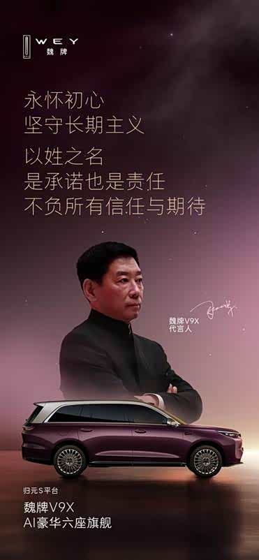 用姓氏押注品牌发展,以个人声誉担保车型品质,将东方经典美学凝于设计。魏建军用三个“第一”,展示了“以姓立名、以人立信、以中国豪华立世界豪华”的自信升级,让魏牌V9X完成了从“中国制造”到“中国创造”的身份跃迁。