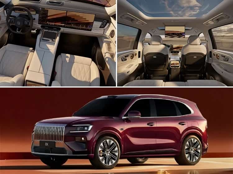 极氪汽车公布了极氪8X的内饰细节,实车将在今年二季度开售。这款中大型5座SUV的内饰延续了极氪9X的设计,配备全液晶仪表盘和中控+副驾一体联屏,同时搭载AR-HUD抬头显示;车内豪华感强烈,使用真皮、实木、金属和水晶材质进行装饰。