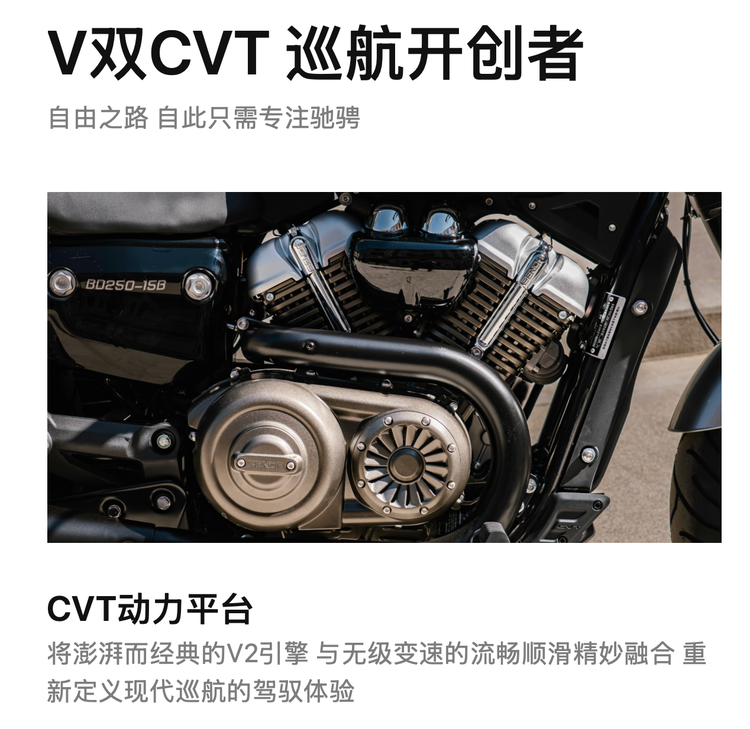 总体而言,奔达金吉拉250CVT没有盲目追求高配置和强动力,而是精准抓住了年轻新手的核心需求,用V缸的质感、CVT的便捷、亲民的定价,打破了入门巡航车的驾驶壁垒。对于想要入手巡航车型、追求轻松骑行体验的年轻人来说,这台车既满足了对酷炫造型的追求,又解决了新手操控难、养车贵的痛点,无疑是降低年轻人驾驶门槛的优质选择,也为入门巡航市场注入了新的活力。