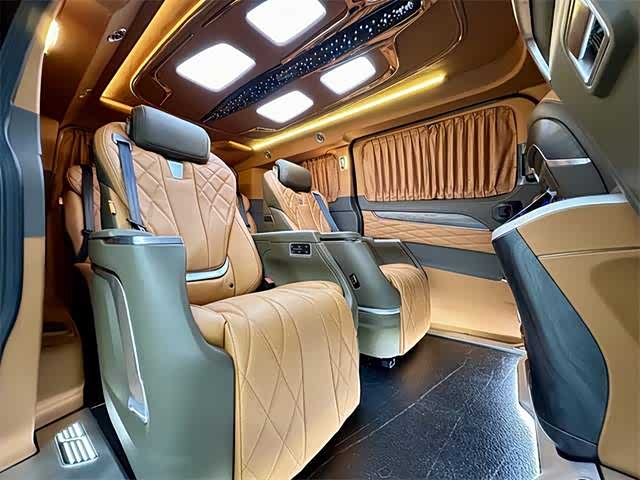 科技与实用配置拉满,兼顾娱乐、办公与日常需求。车内配备双12.3寸高配液晶显示一体屏+24寸二排多媒体影音大屏,搭载5G多媒体系统,支持车载蓝牙,配合影院级VVCAR 7.1音响系统,打造沉浸式移动影音空间,后排阅读灯让车内照明更贴心。全车多处无线充电含办公桌板无线充电,独享后排办公桌板+二排休息脚踏,轻松打造移动办公区;温控智能车载冰箱+独立分区空调,兼顾不同乘客的温度需求,香氛系统与隐私窗帘的加持,更将座舱打造成专属私密空间,商务洽谈更显格调,家庭出行更添温馨。