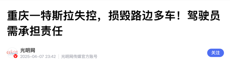 根据《光明网报道》,去年4月,重庆渝北区曾发生一起更为惊险的特斯拉失控事故,一辆特斯拉在行驶中突然失控冲向路边隔离带,撞断隔离桩后先后撞击出租车、货车,随后翻滚反弹,砸中路边三辆停放的私家车,现场车辆损毁严重,万幸的是所有涉事人员均未受伤,驾驶员称事故可能与车辆刹车失灵有关,目前事故原因仍在调查中。