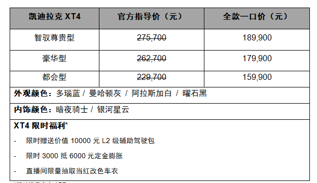 近日,凯迪拉克推出 XT4(参数|询价)智驭尊贵型,售价18.99万元。