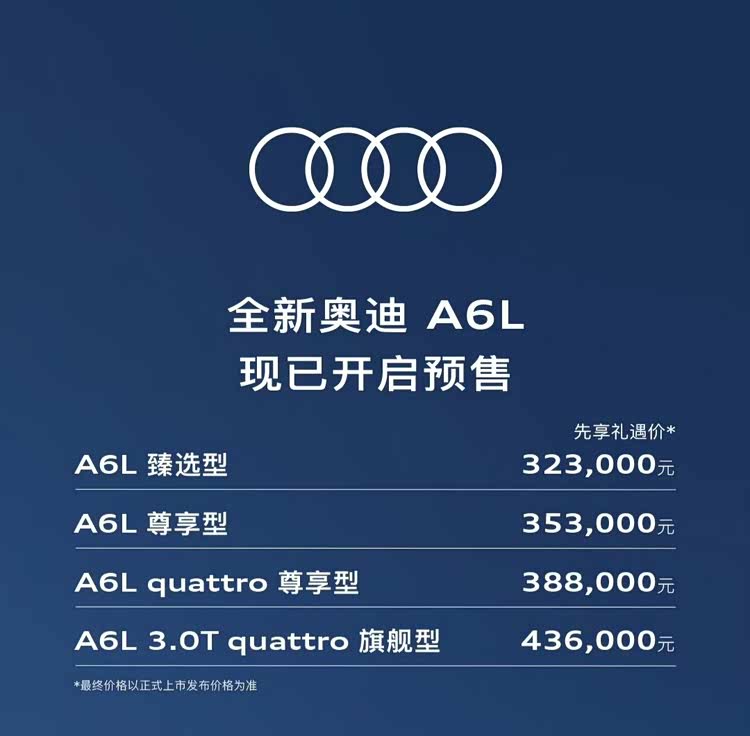 32.3万起,全新奥迪A6L开启预售,三套动力总成可选
