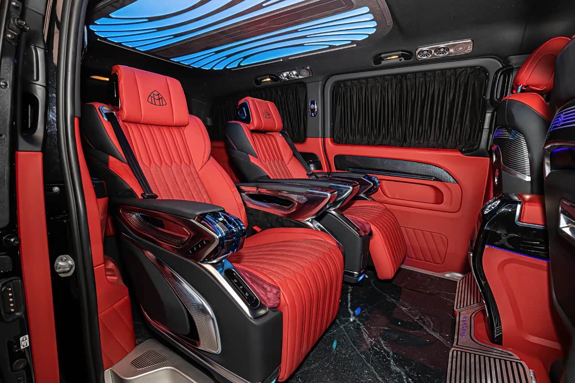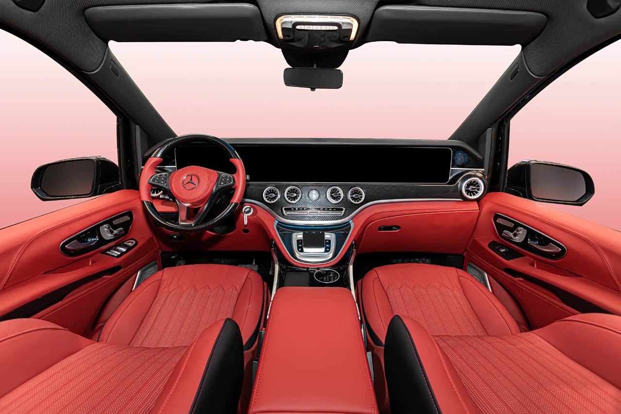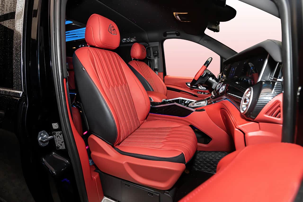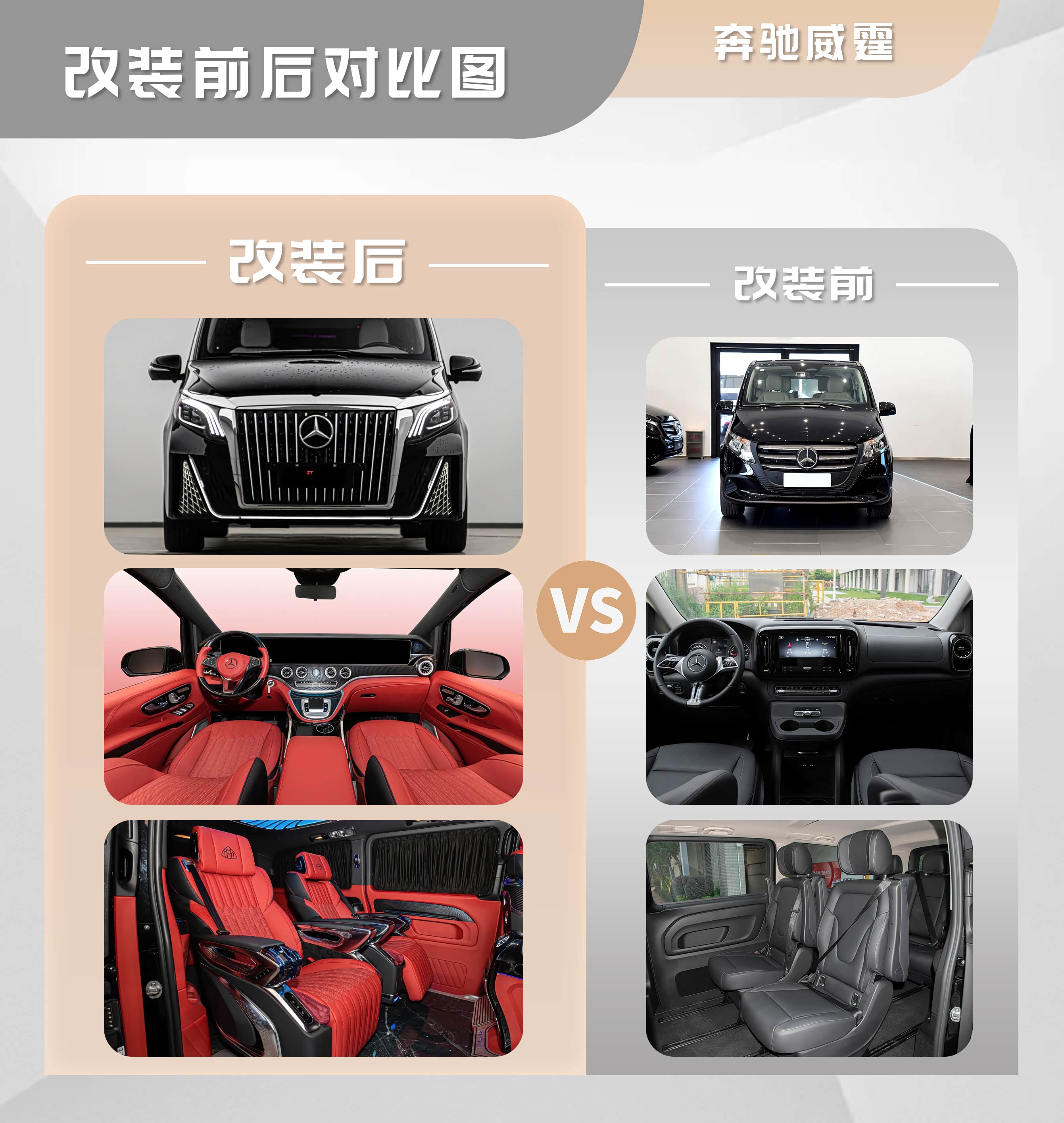说实话,24款 奔驰威霆(参数|询价)原厂内饰真的有点“朴素过头”——大面积塑料件、单调的米灰配色,商务感够但豪华感完全跟不上价位。这次的车主是做商务接待的,核心需求很明确:一是用红黑内饰拉满豪华与运动感,二是靠定制包围提升辨识度,三是补上商务出行必备的实用配置,拒绝花架子。