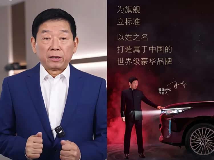 3月5日,魏牌官宣魏建军为 V9X 代言人并发布海报;网友 / 设计师指出海报1:1 抄袭 路虎揽胜运动版(参数|询价) 2025 年广告创意。