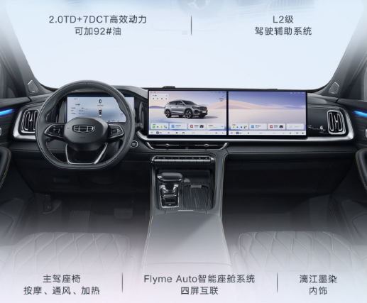 细节上,中控屏下方保留了一排钢琴式物理按键,操作便捷,也提升了内饰格调;全系标配72色氛围灯、可开启全景天窗和电动尾门,高配青云版还增加了HUD抬头显示、主驾座椅通风按摩,实用性拉满。安全配置上,全系配备7气囊,高配新增远端安全气囊,再加上L2级辅助驾驶,不管是日常通勤还是跑高速,都能让人更安心。