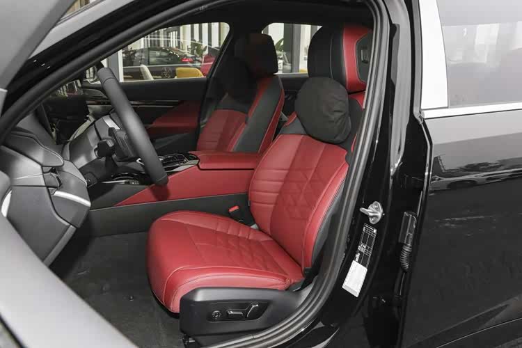其中,真皮座椅是运动风格的设计,坐上去具有不错的支撑性和包裹性,长时间坐车不容易累。此外,新车还搭载了座椅加热、座椅记忆调节、后排水杯架、氛围灯、四温区空调,部分车型还可以选装宝华韦健音响。