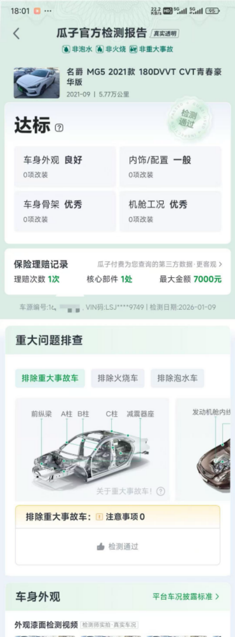 2月10日,王先生在瓜子二手车平台看中一辆 名爵MG5(参数|询价)二手车,销售人员明确承诺,车辆已完成专业检测,验车时若发现与检测报告不符的情况,消费者可依法维权,“哪怕多补一块漆,都算车况不符”。出于对平台“259 项专业检测”的信任,王先生当场支付了购车订金2000元。