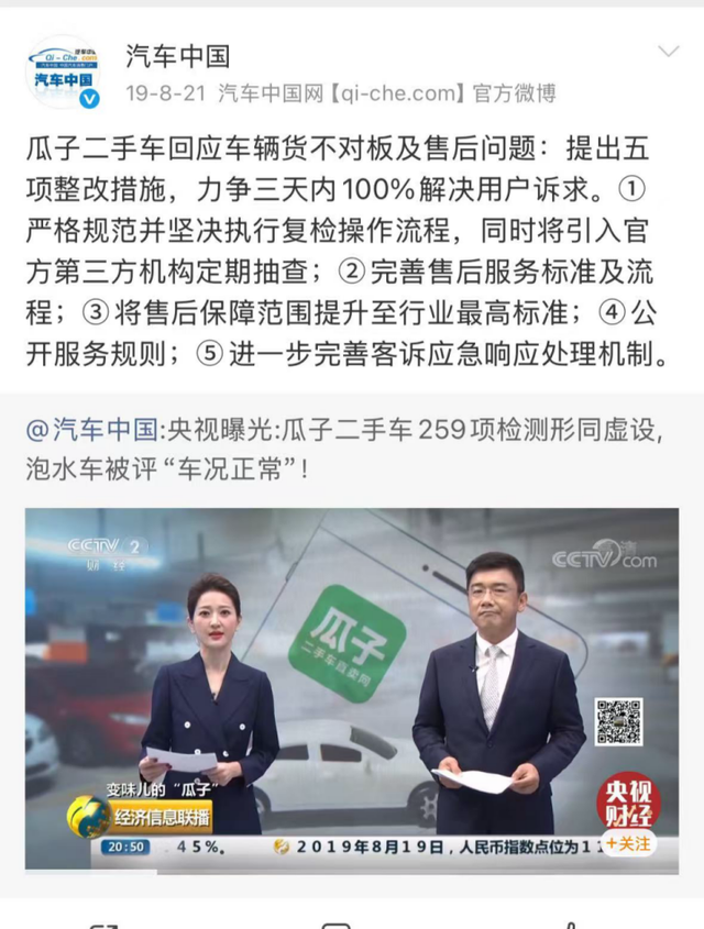据悉,瓜子二手车曾针对“货不对板”问题提出五项整改措施,明确承诺“重大事故车一经发现可直接退车”“确保24小时响应,力争3日内100%解决用户合理诉求”,但从几位车主的的遭遇来看,这些整改措施并未落到实处,平台依旧存在检测不严、售后推诿的问题。