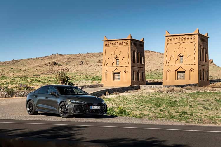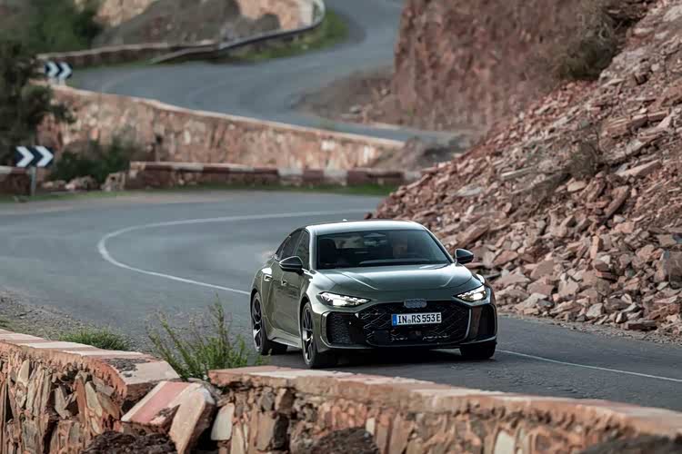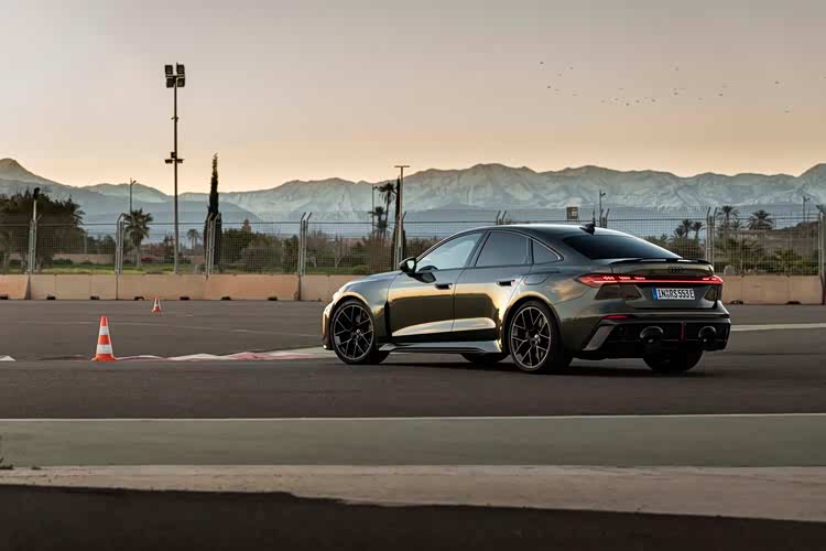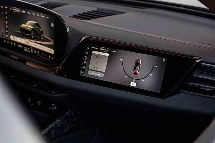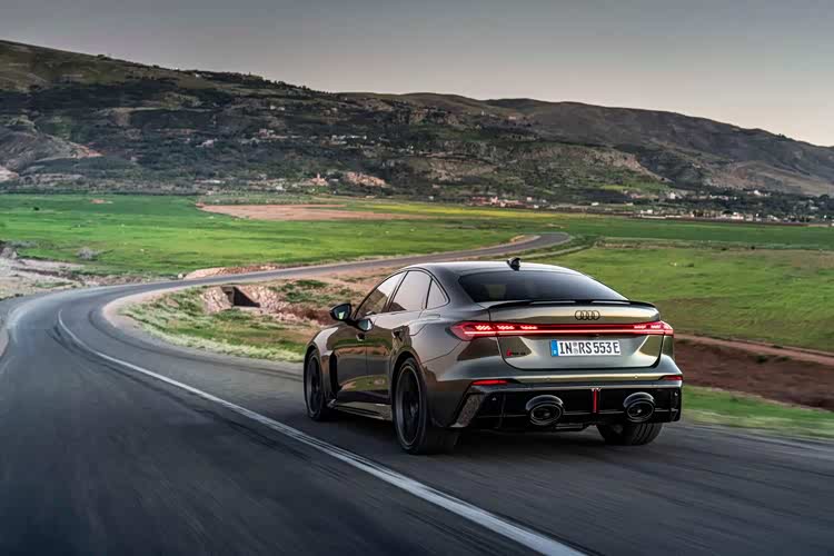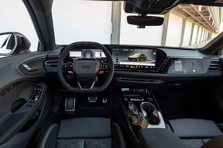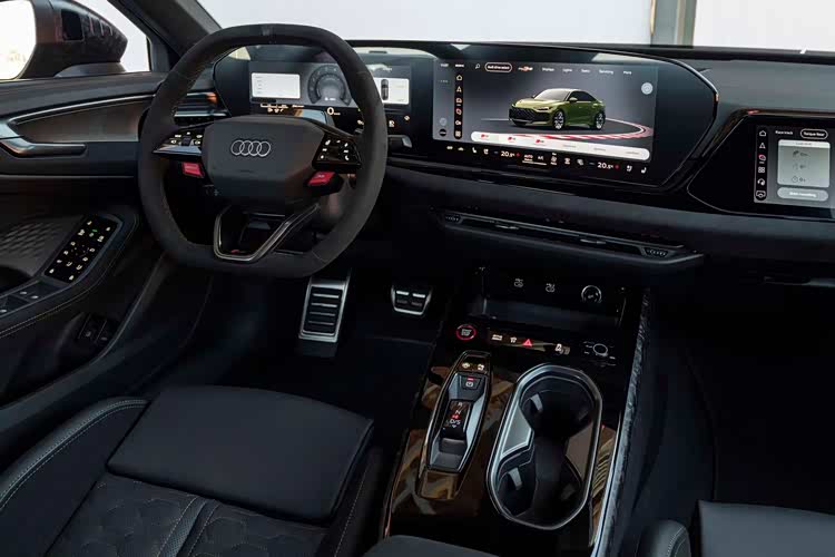 夸张的车轮进气道,再次宣示了运动的属性。车尾部分,巨大的双出排气得到延续,但位置明显要更加偏中部,需要时间去适应,也引发了一定的争议,随处可见的碳纤维扩散器和尾翼,显示了RS车型的姿态,贯穿式的尾灯等设计当然不会缺席,掀背式尾门也保证了实用性。在内饰部分,当然也以普通版本技术打造,国内消费者不会陌生,双联悬浮式屏幕,向驾驶侧偏转,副驾驶的娱乐屏不会缺席,后备箱前端区域则是巨大的双杯架间储物格,以及拨杆式换挡,简单的实体按键,环抱式的中控台面,随处可见的翻毛皮和碳纤维面板覆盖,全翻毛皮,平底方向盘,一体式运动座椅等元素,刺激着驾驶者的战斗神经。