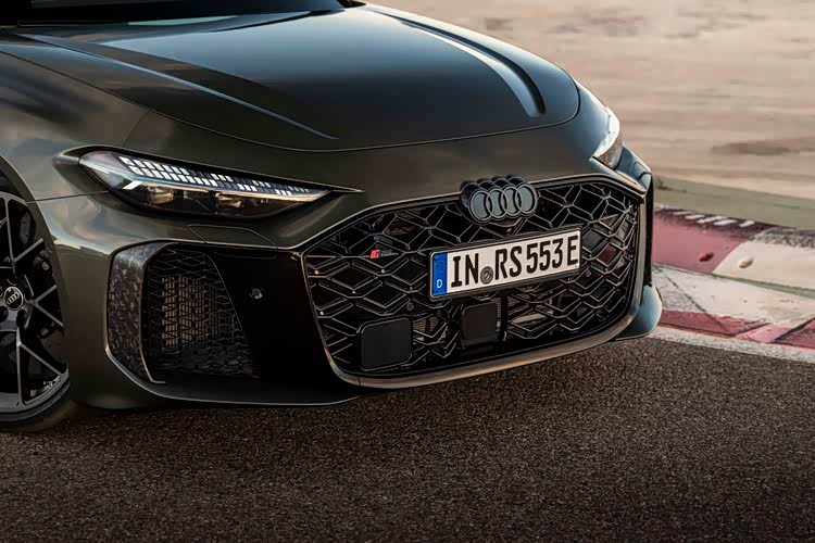 具体来看外观方面,该车当然以海外版本A5车型为基础打造,实拍是Sportback版本,有着比国内A5L更加短小精干的风格,前脸部分则是更加接近于上汽奥迪A5L的大嘴设计,流线的车鼻,高位镶嵌的奥迪车标,夸张的稀疏中网填充,巨大的雾灯区进气道,都彰显着运动的属性。车身侧面,除了比国内版本更加短小之外,最为明显的当属宽体效果,亮明了性能车的姿态。半隐藏式车门把手,大尺寸轮毂等元素当然都不会缺席,依旧是有框车门,显示了继承于A4车型的血统。