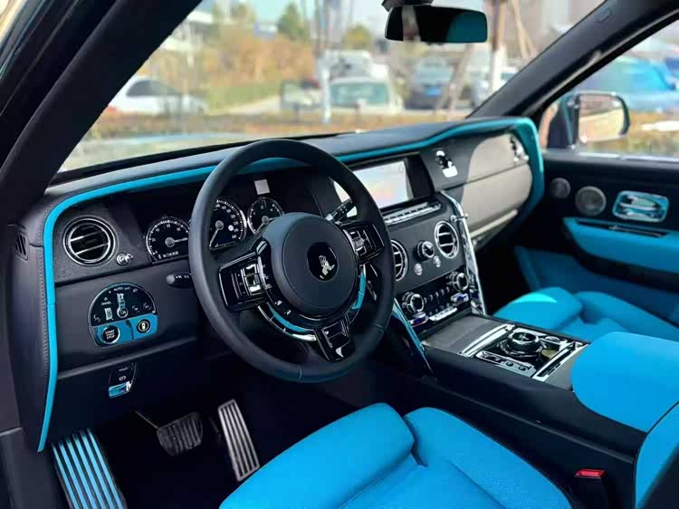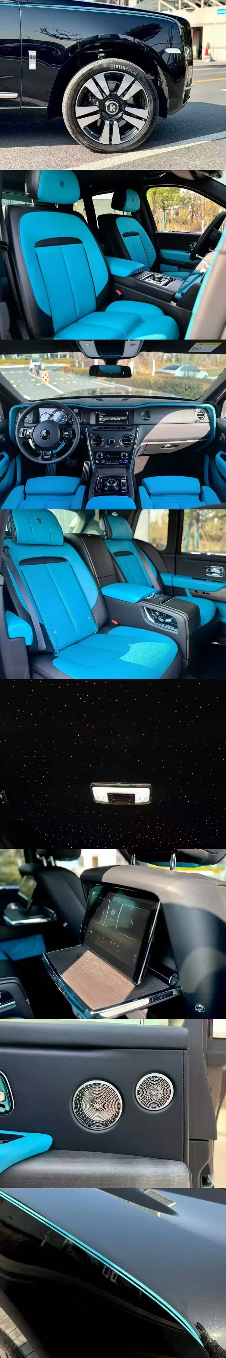 23年劳斯莱斯库里南四座版本,钻石黑外观/绿松石黑色双拼内饰,配置:前后排座椅通风加热按摩,Bespoke定制音响 ,后排娱乐小桌板,冰箱酒柜,星空顶,ACC自适应巡航,360环影,抬头显示,夜视功能,方向盘加热,实木内饰面板等配!