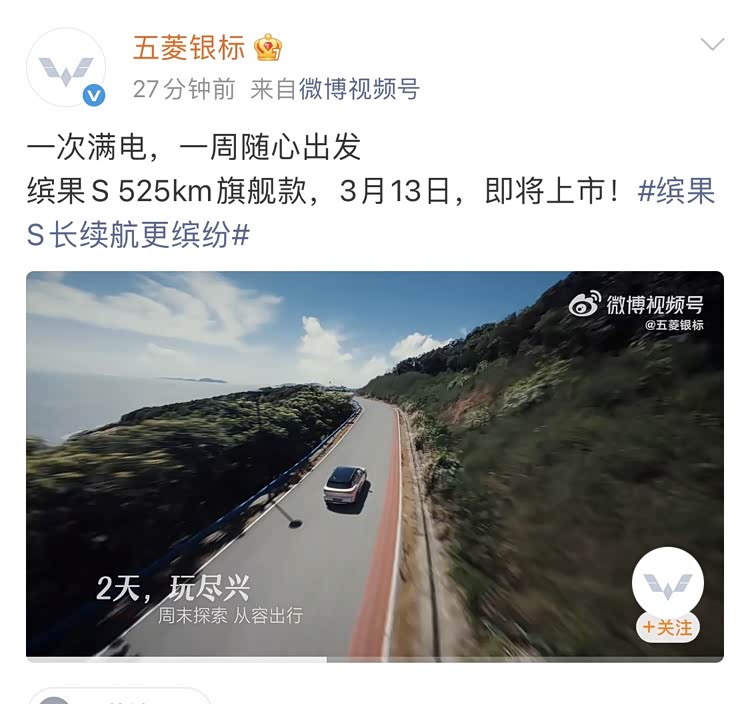 定价多少能接受?五菱缤果S 525km旗舰款将于3月13日上市