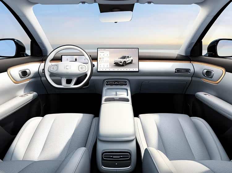 坐进车内,全新启源Q05采用环抱式座舱设计,营造出温馨且有包裹感的驾乘氛围。中控台搭载双大屏组合,包含10.17英寸全液晶仪表盘+15.6英寸2.5K高清中控屏,内置4纳米车规级MT8676座舱芯片,算力强劲,车机操作流畅不卡顿,科技感直接拉满。