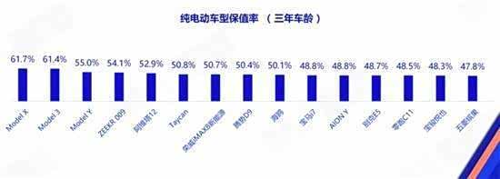 榜单榜首由特斯拉Model X以61.7%的三年保值率占据,作为特斯拉旗下的中大型纯电SUV,Model X定位高端市场,凭借双电机四驱的强劲动力、独特的鹰翼门设计以及成熟的三电系统,成为高端纯电SUV市场的标杆车型。其高保值率的核心支撑的是特斯拉完善的价值护城河,全国统一直营模式避免了经销商乱价,新车价格波动始终保持可控,大幅降低了二手车残值的波动风险。此外,特斯拉官方认证二手车体系提供 了1年/2万公里延保,进一步托底了车辆残值。