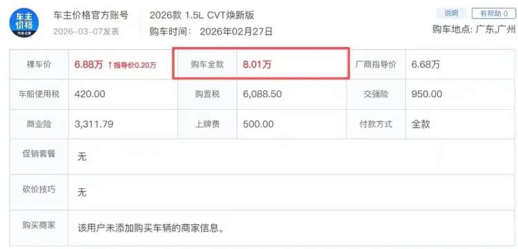飞度就更尴尬了,也是当年的国民神车,还被小酸奶老师称为50万内最好的车,1月份的时候,本田推出了焕新飞度,名义上6万起,算上购置税保险,落地直奔8万,明降暗不降,诚意没看到,好感败光了。