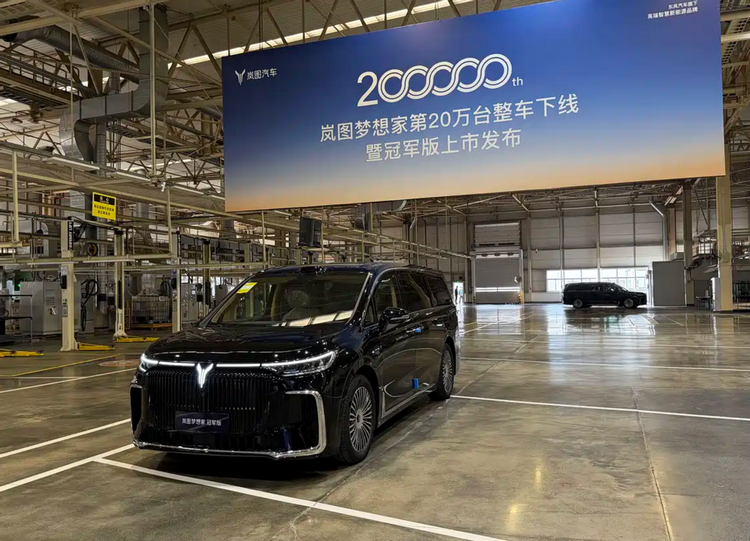 岚图梦想家冠军版的诞生背景,是该车迎来第20万辆整车下线的里程碑。
