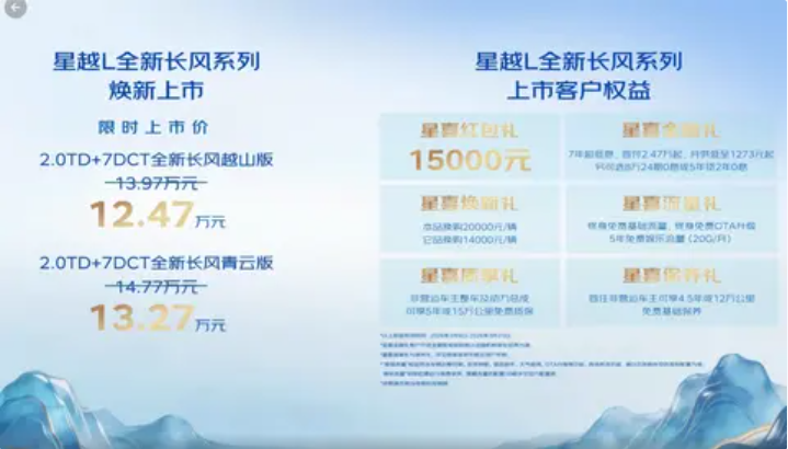 限时12.47万元起,吉利星越L长风系列上市,配2.0T低功率