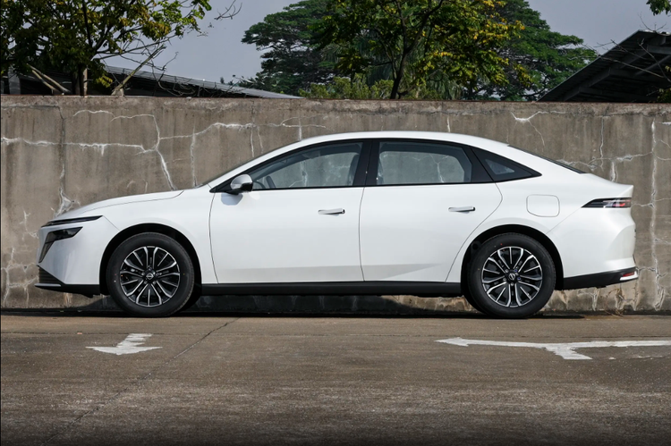 来到车身侧面,可以看出风弧式极简腰线贯穿车身,加之采用了隐藏式门把手,其侧面造型颇为动感,配备了大尺寸铝合金轮圈再次提升了车辆的运动气息。另外,车辆的尾部造型简洁干练,贯穿样式“飓风之眼”尾灯内部融入了“NISSAN”字标,点亮后辨识度较高,后备厢上沿略微上翘的小鸭尾为尾部增添了一丝运动气息,使整体视觉效果更具张力。