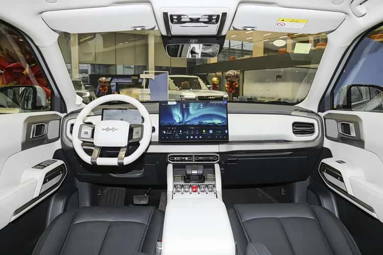 车身尺寸为4605×1900×1720mm,轴距达到2745mm,在紧凑型SUV中属于偏大体量。车身侧面的硬朗轮廓搭配“星轨腰线”,还有隆起的轮眉和大尺寸轮毂,传递出十足的运动感,隐藏式门把手和无边框车门的设计,既降低了风阻,又增添了精致感;车尾的标志性外挂储物盒和侧开式尾门,保留了硬派的越野气息,贯穿式尾灯则和车头形成呼应,夜间点亮后视觉效果出众。