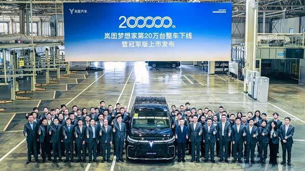 3月10日,岚图梦想家第20万辆整车在武汉黄金工厂正式下线,奥运冠军杨威成为第20万辆岚图梦想家车主。为了纪念这一里程碑时刻,“新时代家庭智慧旗舰MPV”岚图梦想家冠军版限量上市,新车售价30.99万元,采用全新“曜黑格栅”设计,搭载同级唯一华为乾崑智驾ADS4和鸿蒙座舱5,同步推出多项权益政策。