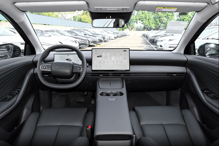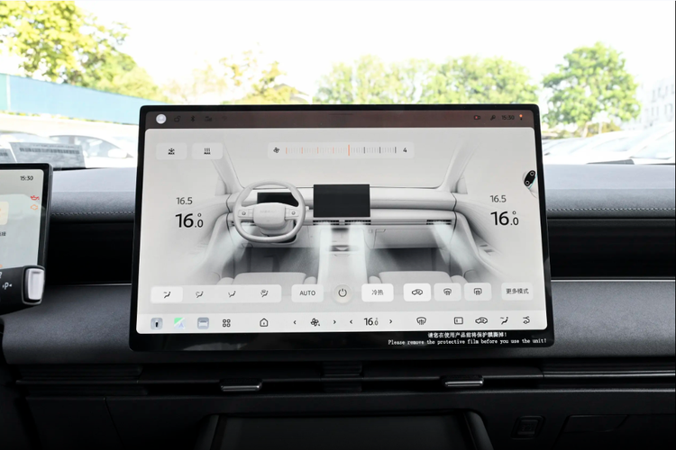 来到车内,可以看出东风日产N6Pro+的智能座舱不管是设计风格还是智能化表现,都足以抹平合资品牌与自主品牌之间的差距。车内是双大屏组合:10.25英寸液晶仪表+15.6英寸悬浮中控屏,大小刚刚好,不挡视线,显示还清晰。仪表看车速、电量、驾驶辅助一目了然,中控负责导航、多媒体、车设、空调,界面简单,逻辑清楚,上手特别快。