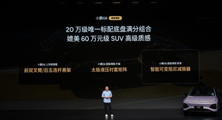 小鹏G6底盘立足用户需求持续进化,从最初专注单人运动操控,全面升级为满足一家人的驾乘舒适。此次,小鹏G6超级增程全系标配太极AI底盘,同级唯一标配前双叉臂/后五连杆独立悬架+太极液压衬套矩阵+智能可变阻尼减振器,以20万级唯一标配底盘满分组合,拥有媲美60万级SUV的高级质感,让每位驾乘者都能拥有良好的体验。新车还拥有行业领先的5项AI底盘能力,拥有感知广、执行快、可迭代的优势,可实现最远提前200m识别、最大提前300ms调节,并具备超强自学习能力,最快21天可迭代一个新功能,轻松应对城市、乡村、高速等多种路况,适配家庭全场景的驾乘需求。
