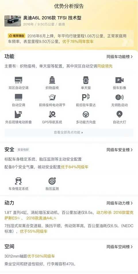 二 手奥迪A6L 2016款 TFSI 技术型在价格、配置、动力及空间方面均表现出色。若您寻求性价比高中大型轿车,这款仅售11.98万的奥迪A6L值得您的考虑。