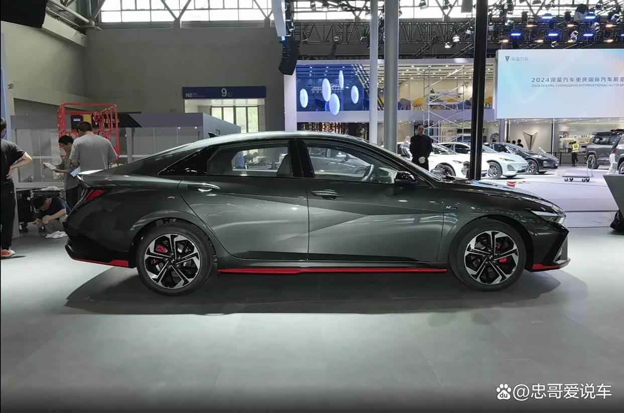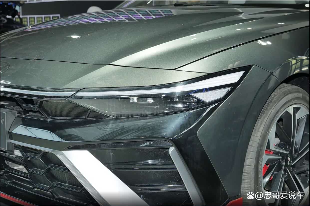 车身侧面最显著的变化是采用了"Fastback"快背式设计,车顶线条从B柱开始以12.5度角平滑下压,风阻系数降至惊人的0.26Cd。隐藏式门把手首次出现在伊兰特车系中,当携带钥匙接近1.5米范围内会自动弹出。全新设计的18英寸双色轮毂采用航空级铝合金材质,单个重量减轻1.2kg,搭配235/40 R18规格的低滚阻轮胎。