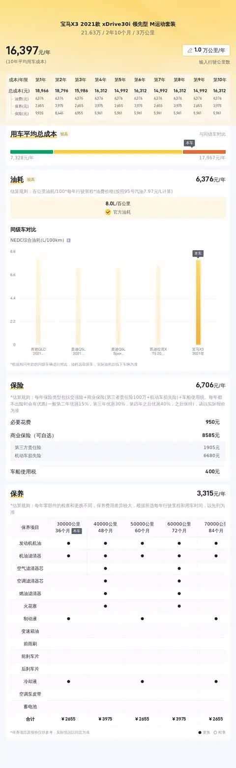 就年度用车成本而言,假设每年行驶一万公里,该车型的燃油、保险及保养等费用综合起来约为每年14644元。然而,实际费用将取决于用车频率及环境等因素。
