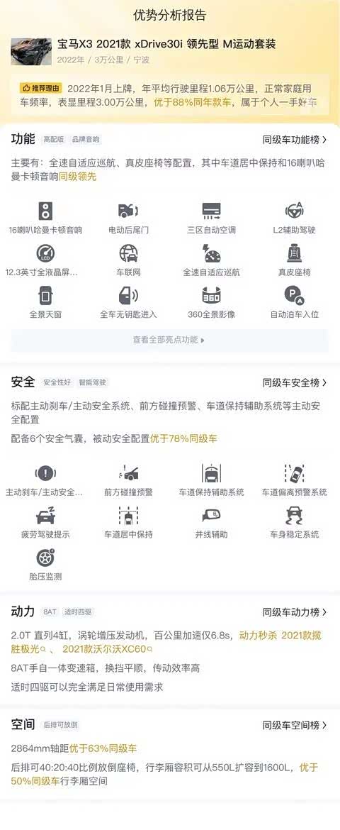 综合考虑的新车含税价、用车成本、市场趋势、优势分析以及同款对比等数据仅供信息参考。至于配置部分,由于二手 车并非标准产品,存在车辆配置改装的可能性,因此实际车况需结合线下实地查看进行综合评估。