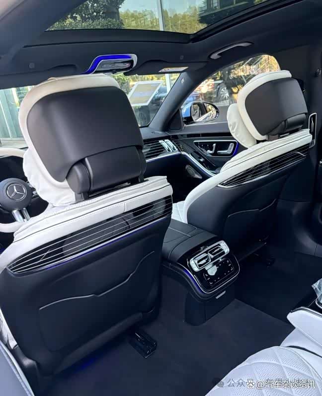 如果说外观是艺术品,内饭就是移动行宫了。Nappa真皮包裹的座椅,配上精致的胡桃木饰板,64色氛围灯的点缀下美得让人窒息。12.3寸数字仪表+12.8寸OLED中控屏幕的配置足够奢华。后排更是教科书级的享受——航空座椅、腿托、按摩、通风,一键躺平直接变头等舱。就连音响都是顶配的柏林之声4D系统,虽然MBUX系统显得中规中矩,但这丝毫不影响它的王者地位。