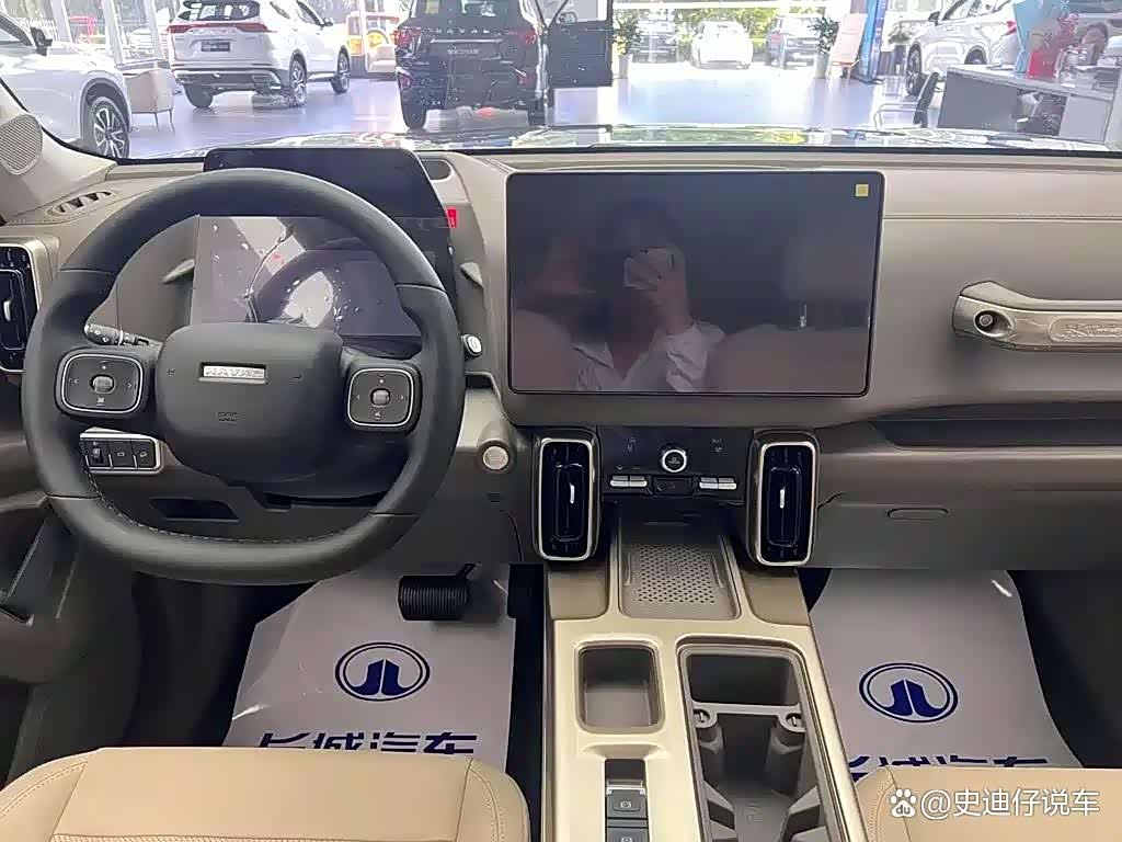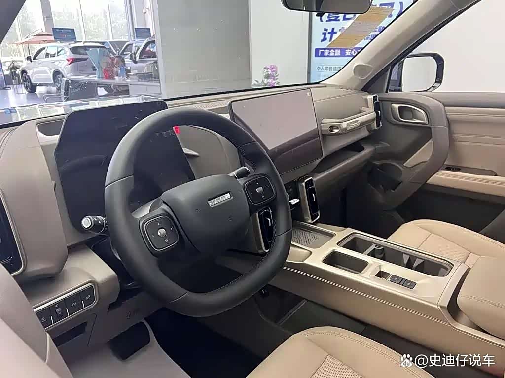 内饰也将新增米色风格,随处可见的拉手配合大量镀铬饰件点缀,与硬派外观相得益彰。最大的亮点当属换装了悬浮式中控大屏,再配合全液晶仪表盘+换挡屏、HUD抬头显示,显得更有科技氛围,并搭载Coffee OS 3.0智能座舱。同时还换装了D型双幅式多功能方向盘+电子怀挡,随之副仪表台处的旋钮换挡改为储物格。另外还将配备手机无线充电、座椅通风、全景天窗等配置。