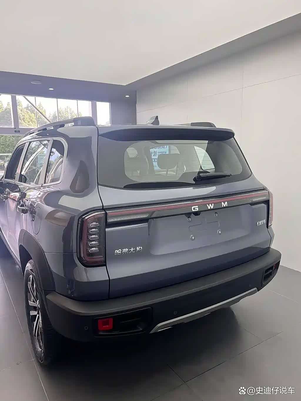 车身侧面基本保持不变,“方盒子”造型配合前后隆起的分段式腰线、粗壮的熏黑轮眉,显得很有肌肉感,并继续提供车顶行李架,以及18/19英寸两种造型的轮毂可选。尾部突出的熏黑保险杠加之三孔式银色护板,与前脸相呼应,“天际之光”贯穿式尾灯也没有缺席,不过中间将改为“GWM”标识。同时不难发现,除灰色、黑色外,26款哈弗大狗还将新增与哈弗猛龙类似的“苔岩绿”配色。
