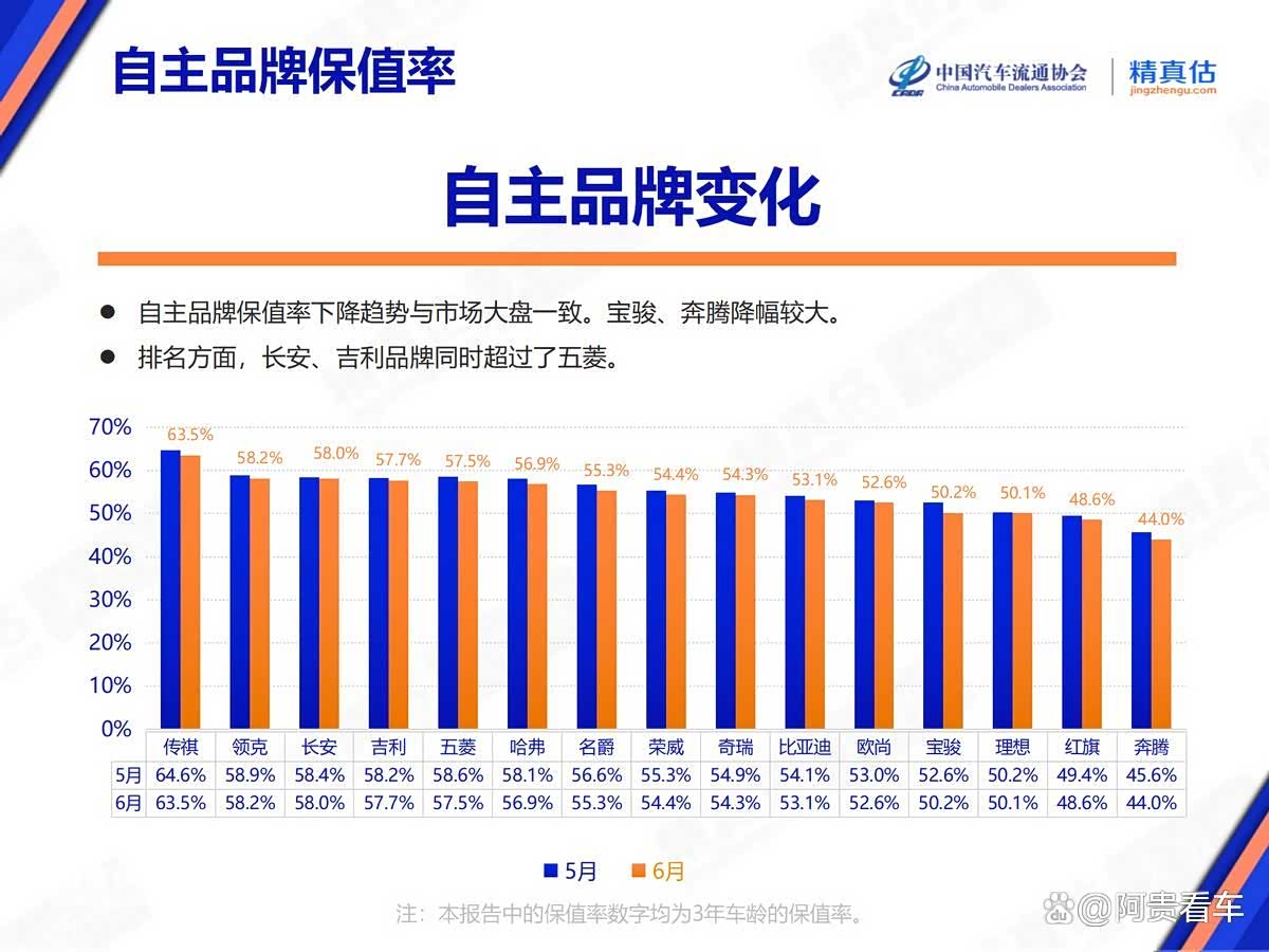 自主品牌保值率全线缩水,高端子品牌尤甚。市场预期未来价格战加剧,导致二手车价格普降,影响广泛,涉及不同动力类型与车身风格。长安、吉利虽面临挑战,但其保值率排名逆市上扬。