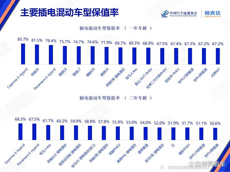 主要纯电动车与插电混动车型保值率: