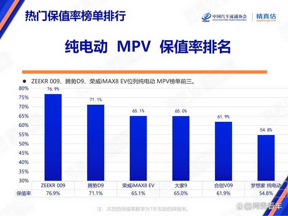 纯电动MPV:极氪009与腾势D9领跑高端市场,荣威iMAX8 EV以其家用舒适性获得第三。