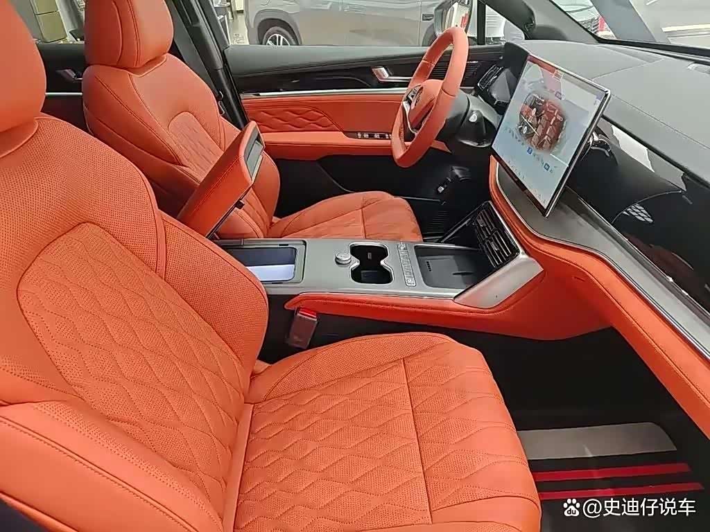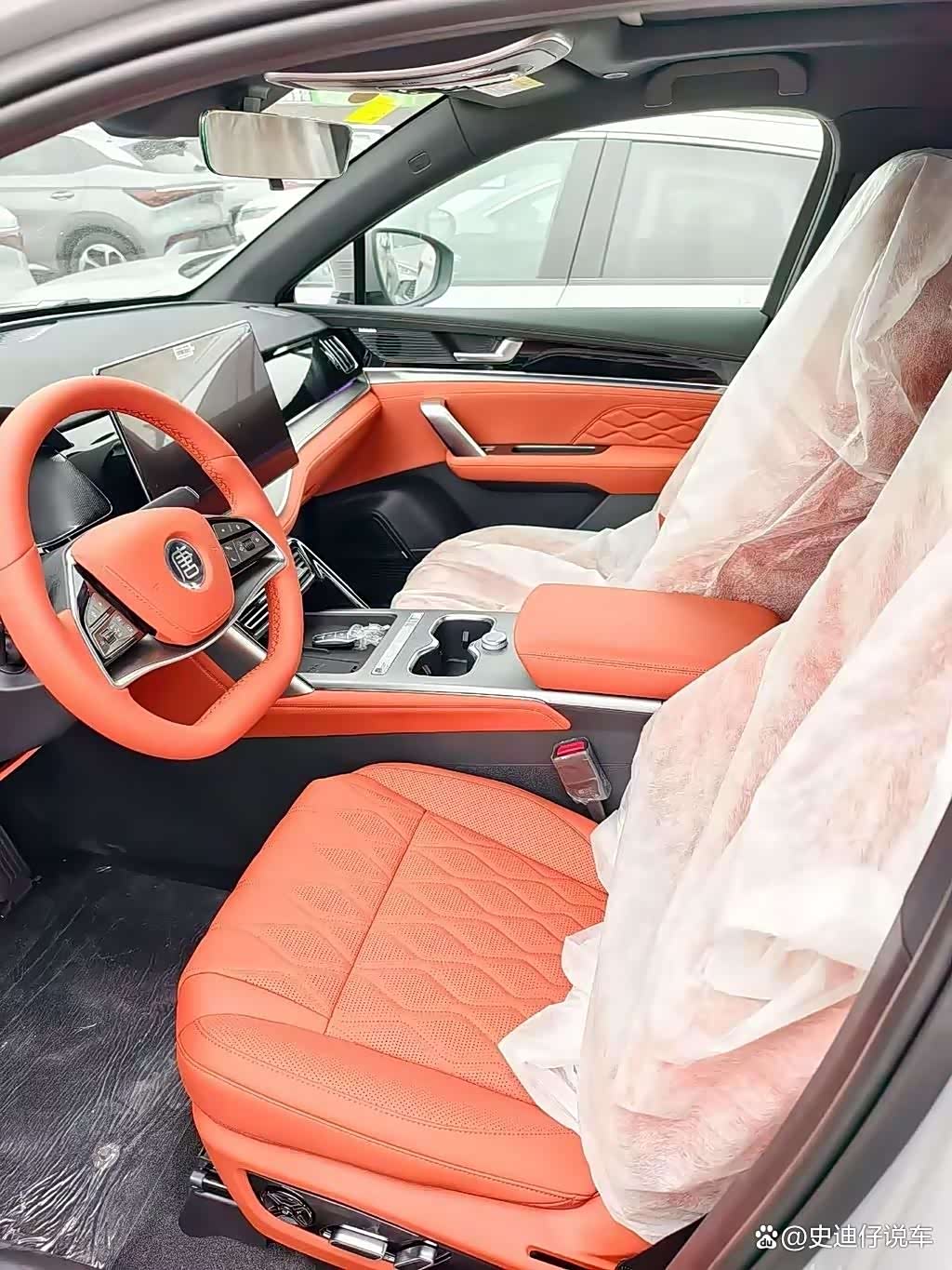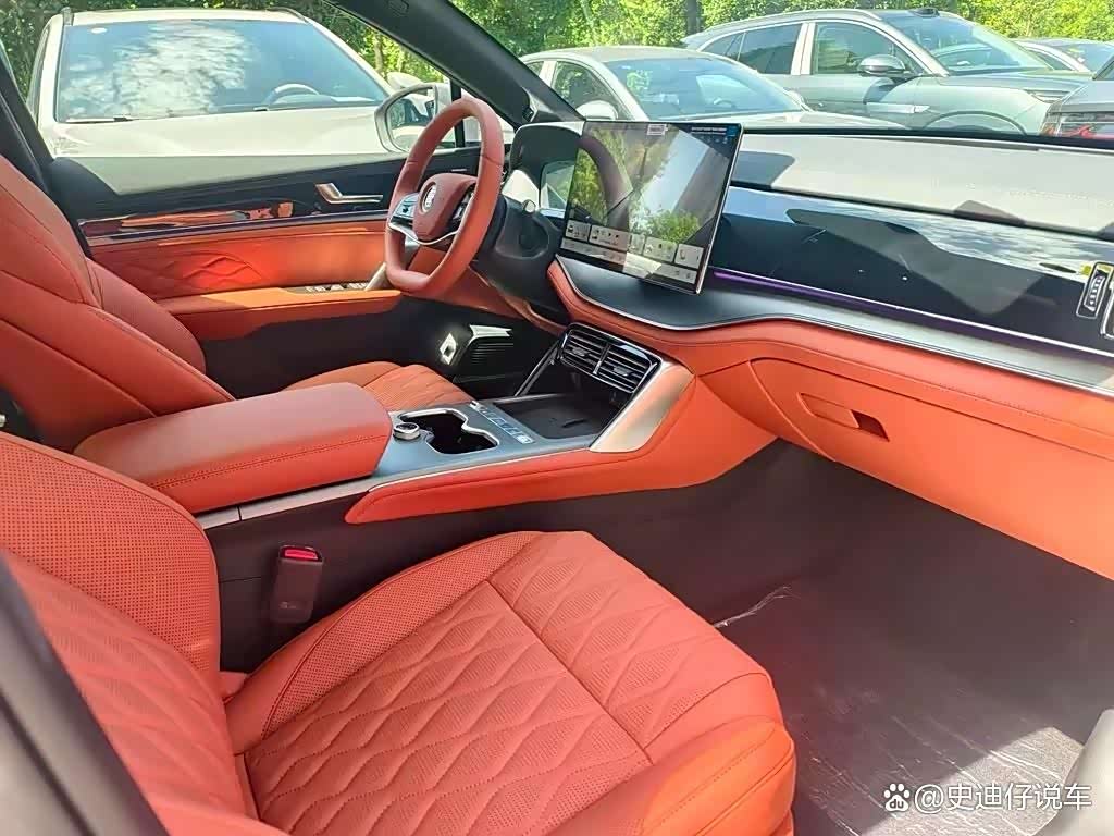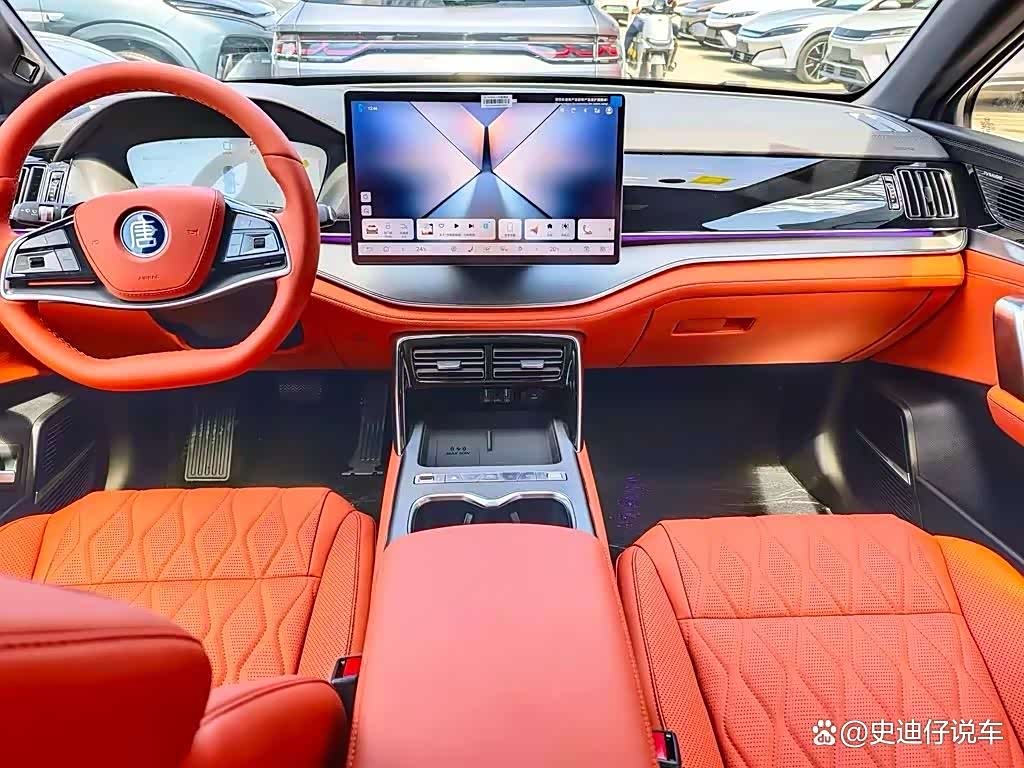 2026款唐DM-i的内部装饰升级成为了另一大看点。除了维持原有的“藕韵灰”色彩搭配,我们还加入了与唐L风格相匹配的“霞绯红”主题,红色的皮革与镀铬装饰条相结合,为座舱创造了一种奢华与动感共存的感觉。中控台采用了环抱式的设计布局,配有悬浮式中控大屏、全液晶仪表盘和HUD抬头显示,形成了“三屏联动”的科技氛围。经过精心的重新设计,副仪表台集成了50W手机的无线快速充电功能、镀铬的物理按键、双杯架以及智能冷暖冰箱,并且电子怀挡的加入进一步提高了空间的使用效率。在材料选择上,车内广泛使用了皮质材料,并配备了双幅式多功能方向盘、31色氛围灯和丹拿音响系统。前排座椅还具备通风、加热和按摩等功能,其豪华配置与高端车型相当。