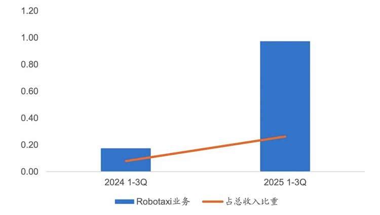 营收方面,2025年前三季度,文远知行Robotaxi收入0.97亿元,占总收入比重为26%,为2024年同期的3.25倍。其中,2025年三季度广州每辆商业化Robotaxi在每日24小时运营时段内完成至高25单,行程(在优惠单价驱动下)较2024年最高15单增长66.6%。